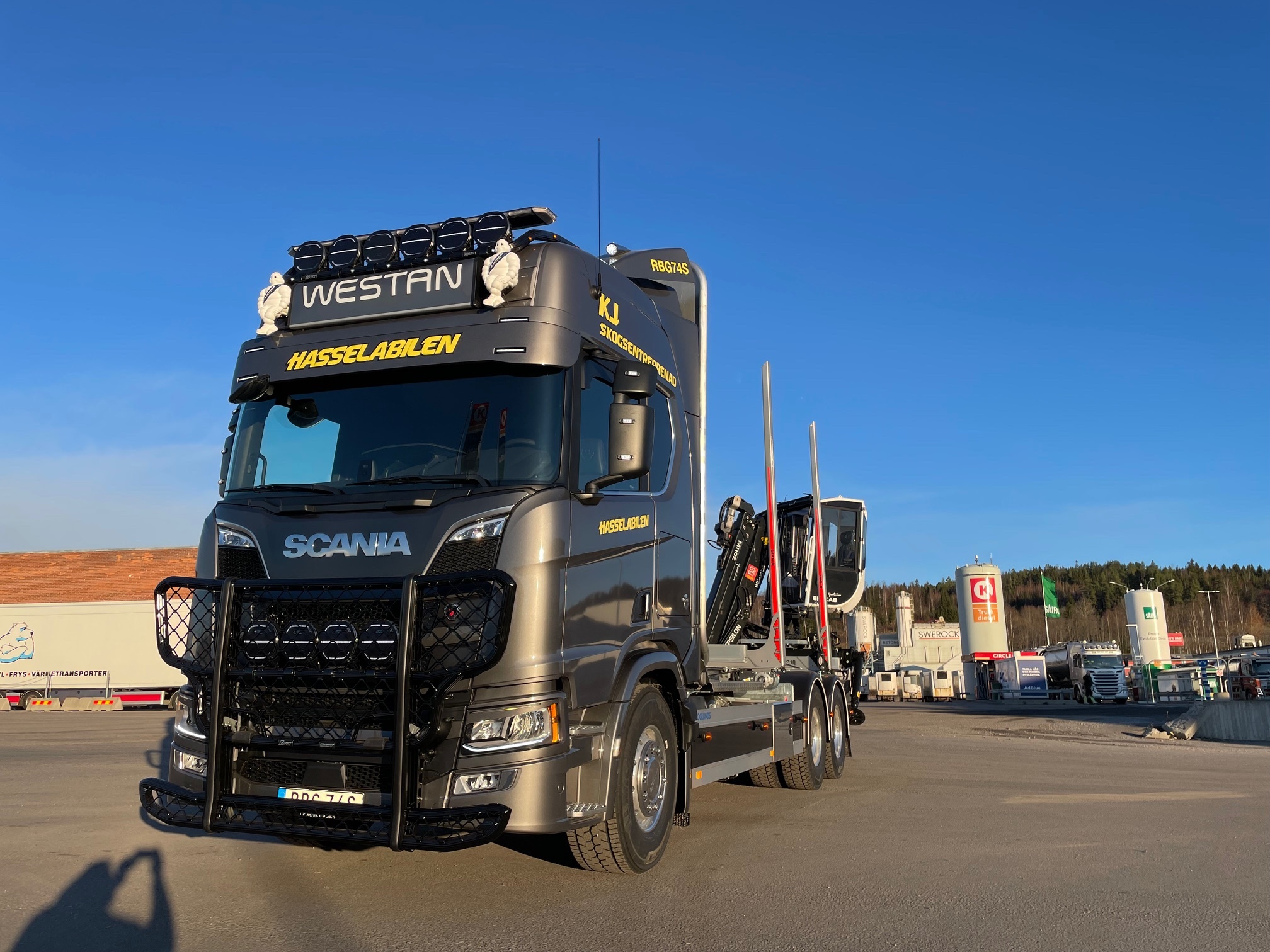 Krister och Daniel har tagit ut en ny Scania R 660 6x4 timmerbil. OP Höglunds i Säffle har gjort påbyggnationen samt monterat den nya Epsilon-kranen. Berners i Sundsvall har monterat extrautrustningen. Vi tackar för förtroendet att få leverera den fina bilen.