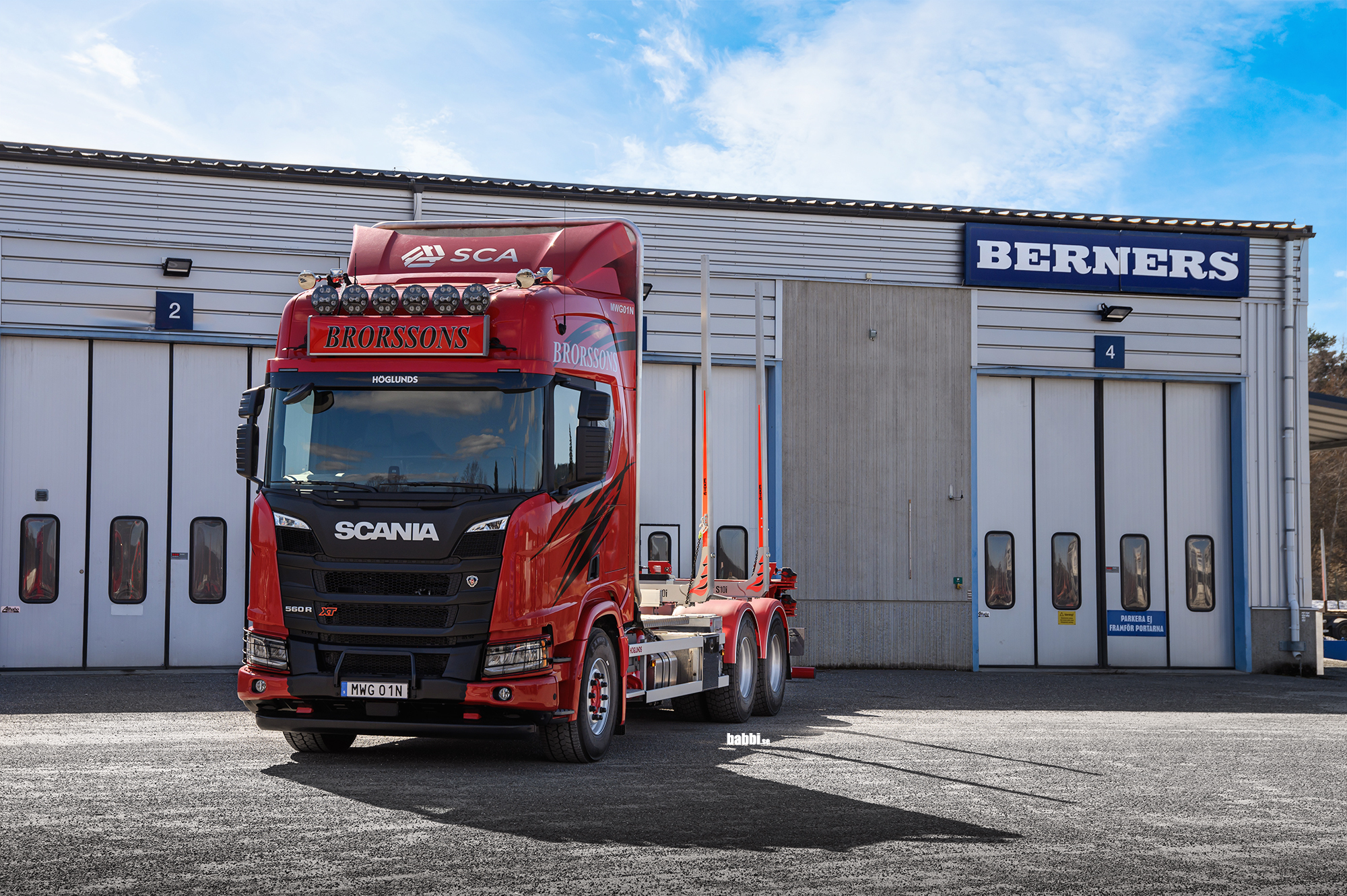 Brorssons Åkeri AB gasar vidare med ännu en ny Scania R560 6x4 för sina timmertransporter. Denna bil är utrustad med Scania Super drivlina som besparar drivmedel med 8%. Byggnation utförd av kunden själv. Berners Tunga Fordon i Sollefteå tackar för förtroendet önskar åkeriet lycka till med nya bilen.