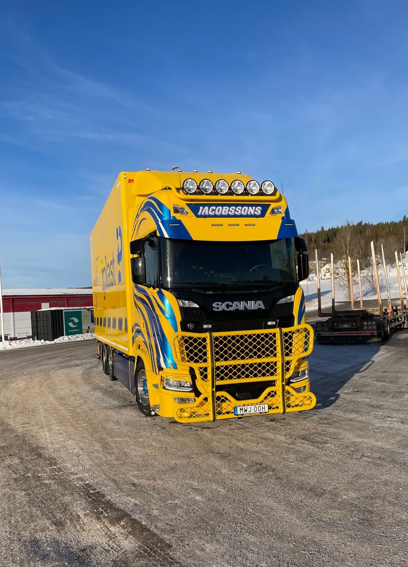 Ola och Björn har tagit ut en ny Scania S 560 Super med den nya drivlinan ifrån Scania. Lackbolaget i Sundsvall har målat hytten, Limetec har monterat skåpet och Berners i Sundsvall står för el-dragningen. Vi tackar för förtroendet att få leverera den snygga bilen.