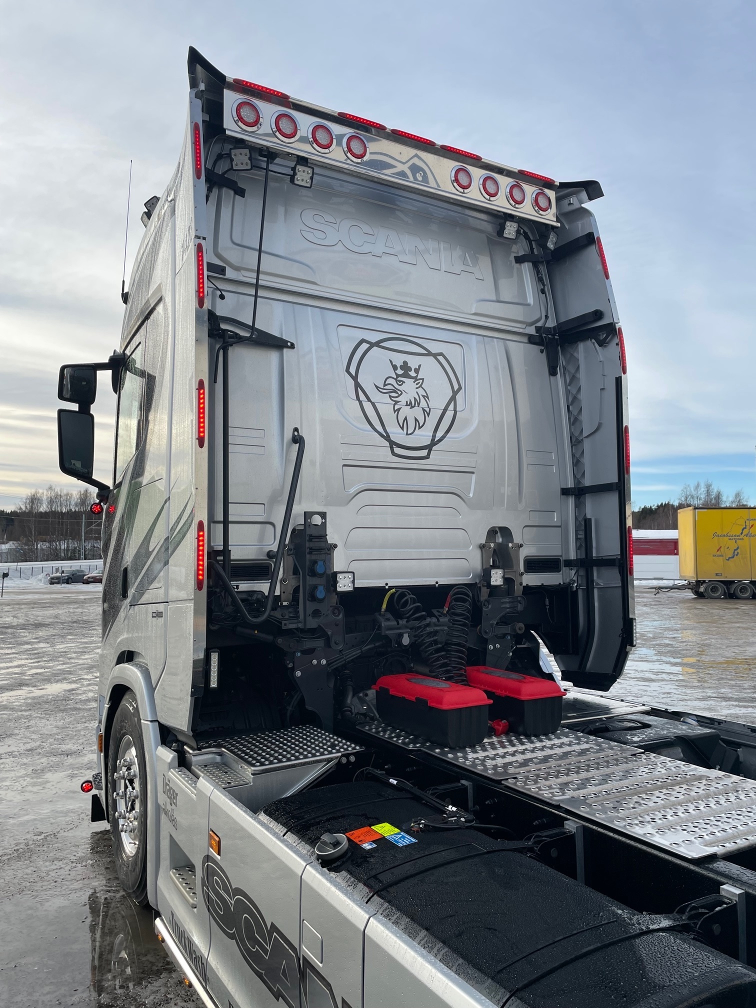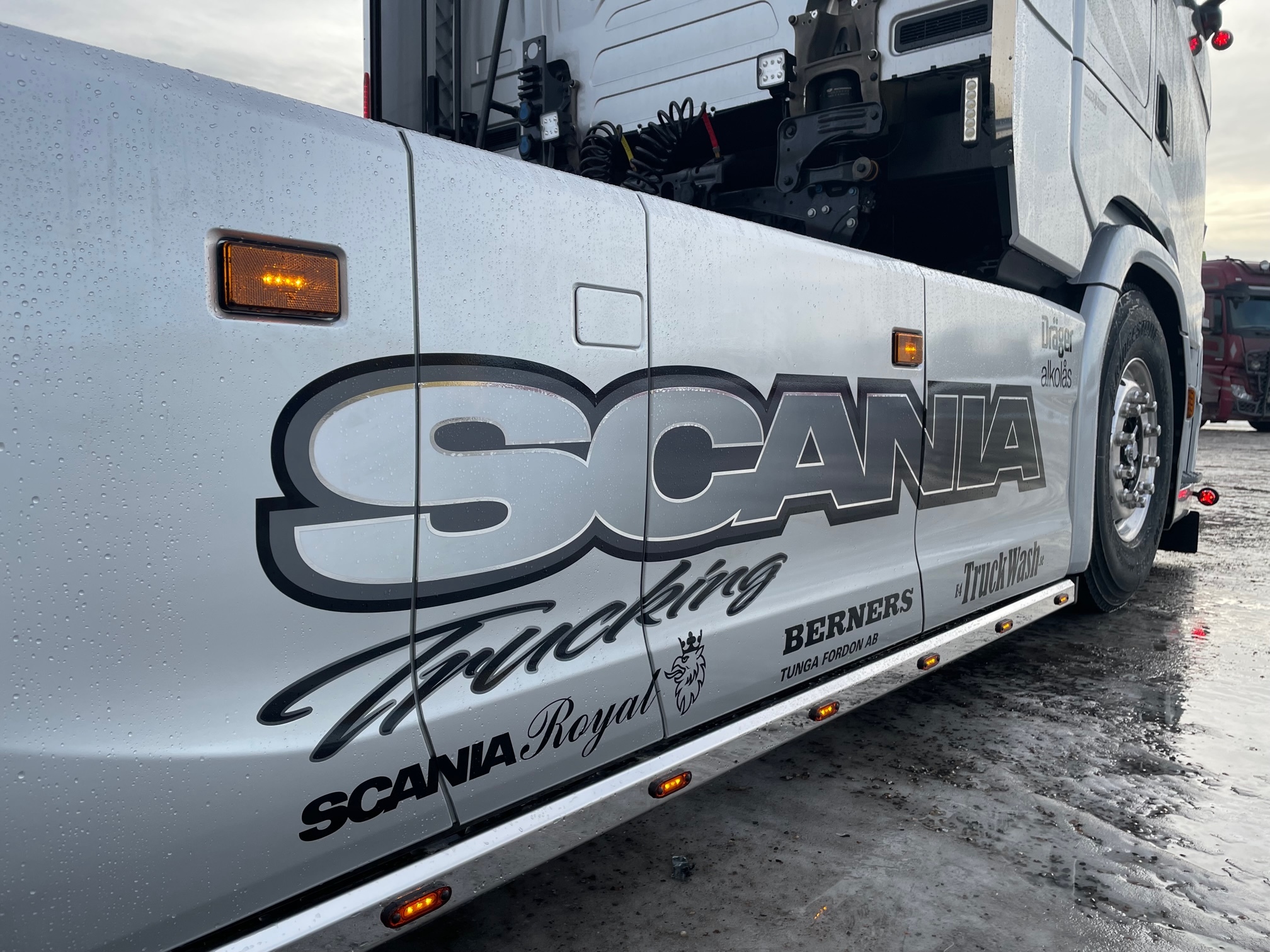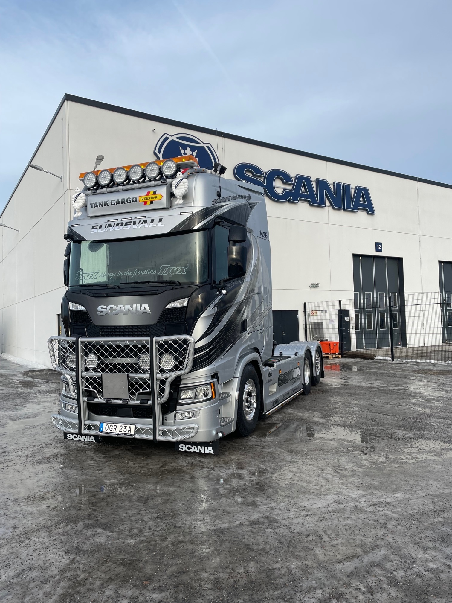 Patrik har tagit ut sin första Scania med den nya super motorn. Det blev en S 560 dragbil som utrustats på vår verkstad i Sundsvall. Troeng står som vanligt för den snygga dekoren. Vi tackar för förtroendet att få leverera den stiliga bilen.