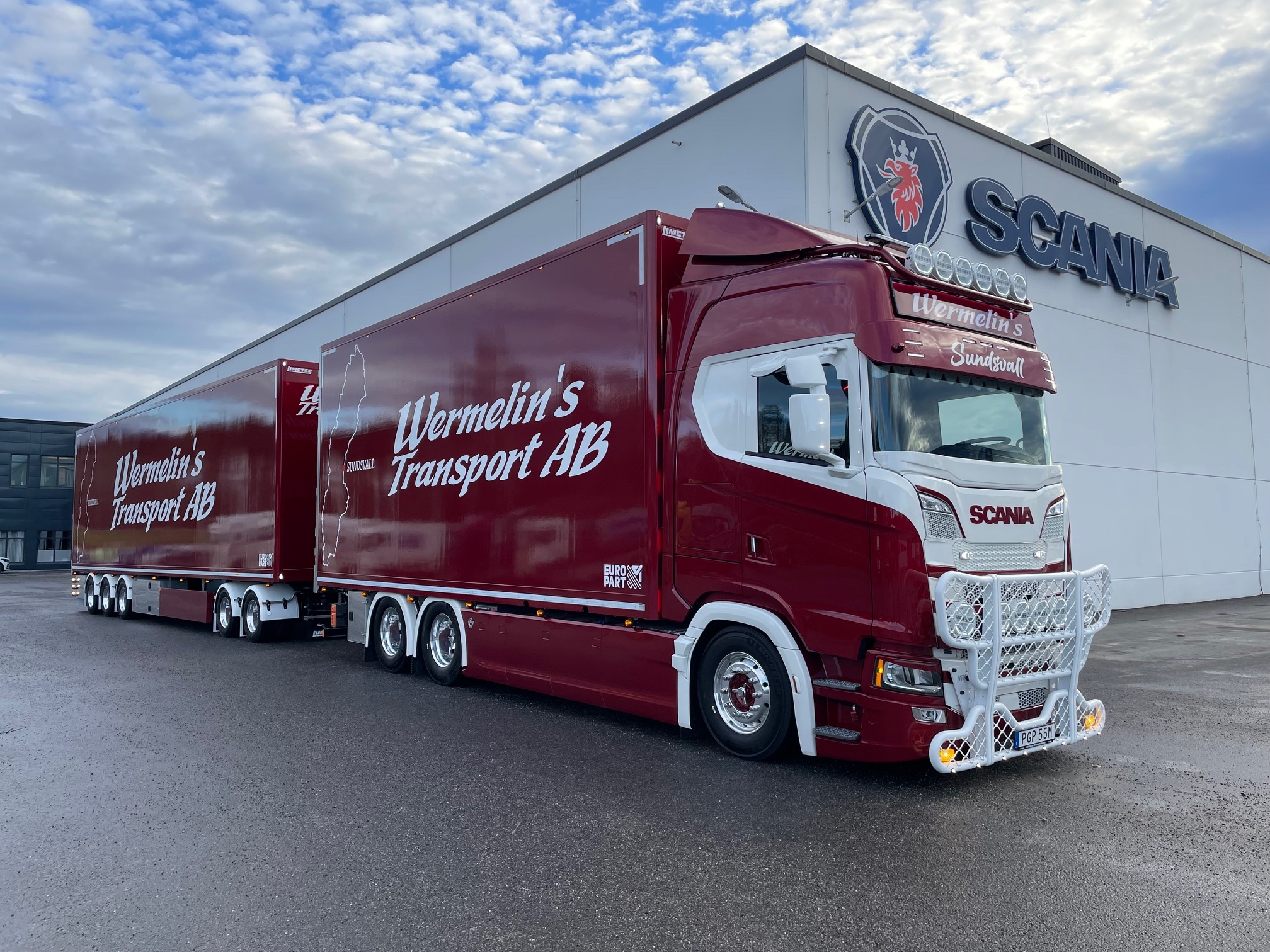 Emil har investerat i en ny Scania S660 6x2 med påbyggnation & släp ifrån Limetec Finland. Fordonscentralen i ö-vik står för lackeringen. Verkstaden i Sundsvall har monterat extra utrustningen enl kundens önskemål. Nyman har gjort den fina inredningen. Vi önskar Emil många trevliga mil i det nya fina ekipaget.
