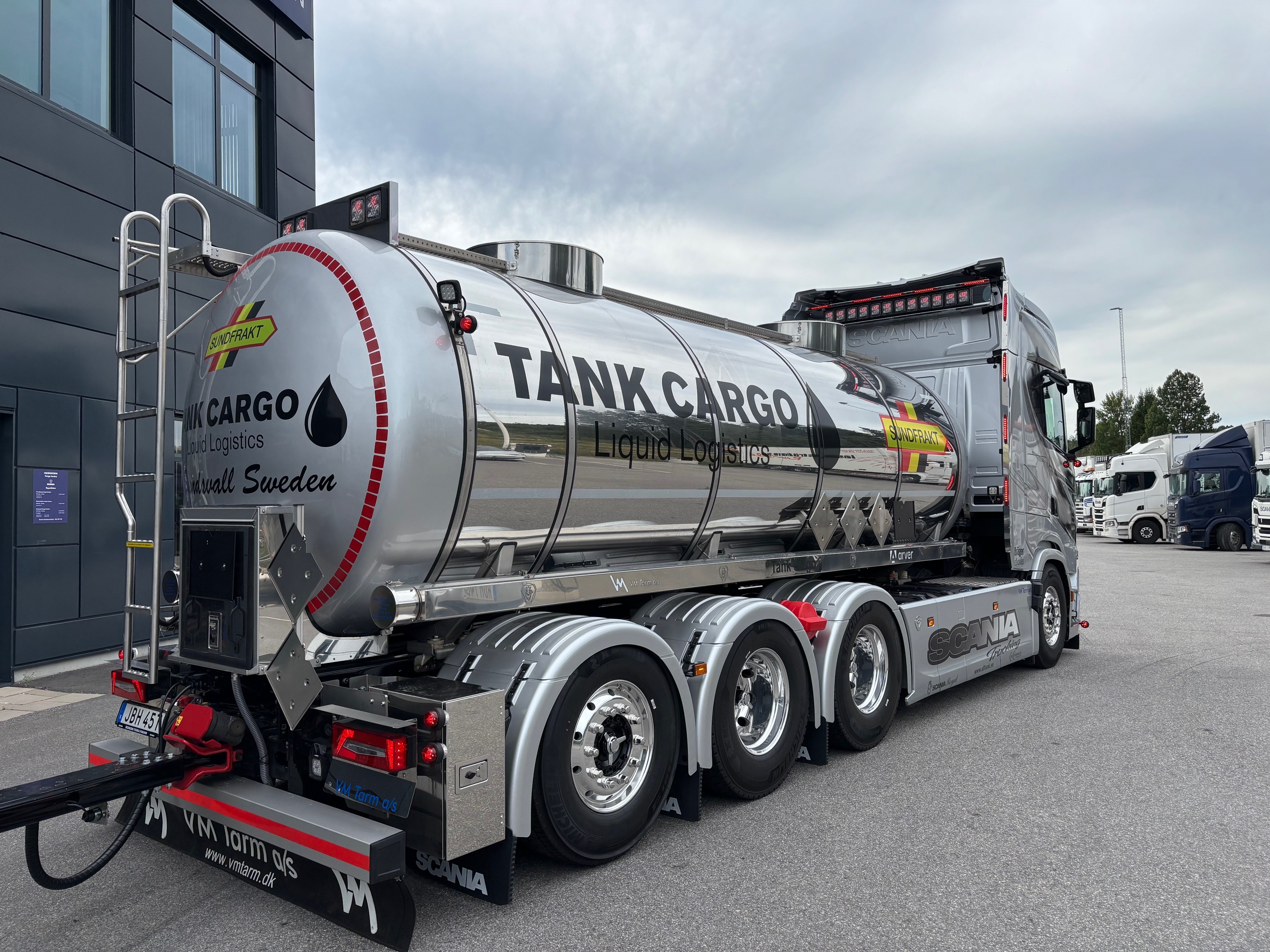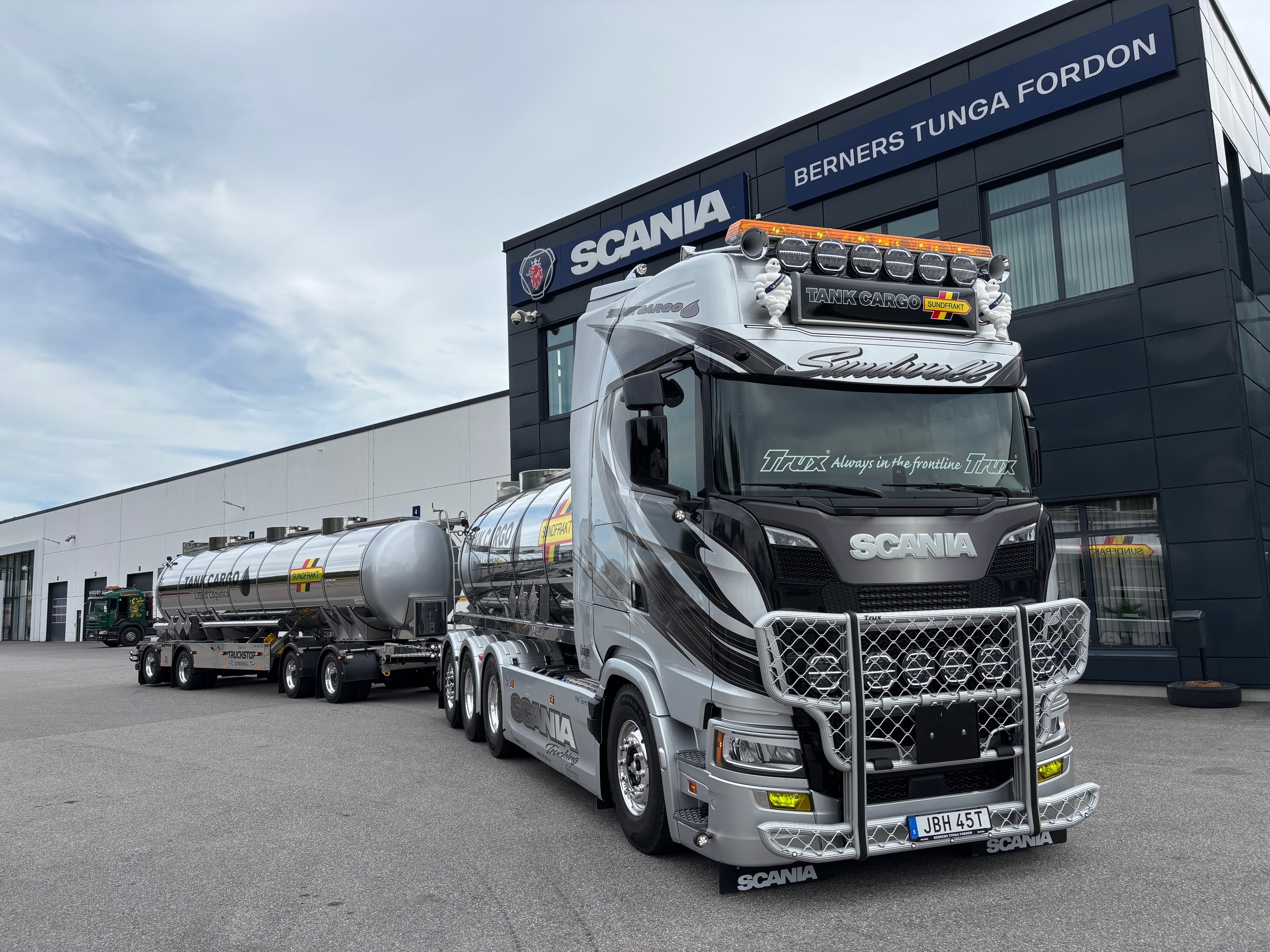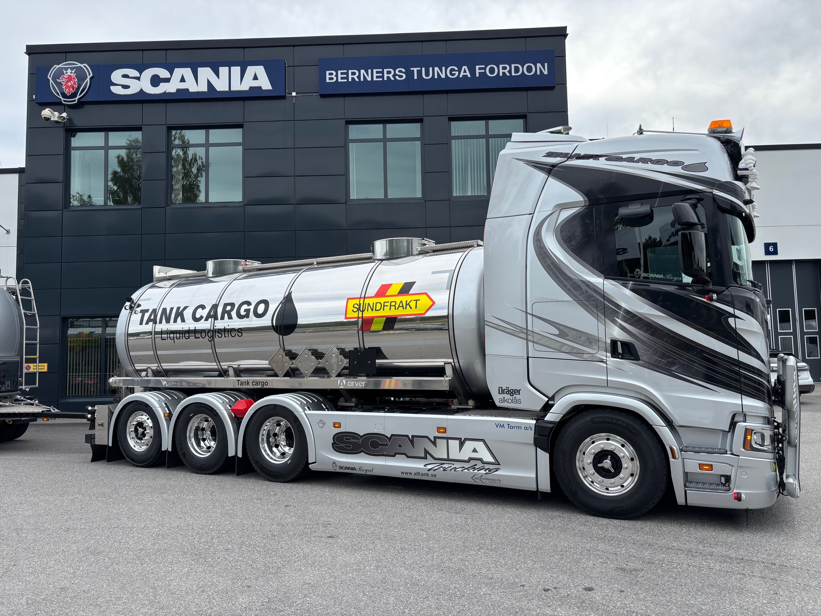 Patrik satsar framåt och rullar nu ut med ett 74-tons ekipage bestående av en Scania S660 8x4*4 och en VM Tarm-vagn. Bilen har utrustats av Berners verkstad i Sundsvall enligt kundens önskemål, och den stilrena dekoren är framtagen av Troéng Design. Vi på Berners Tunga Fordon i Sundsvall vill rikta ett stort tack för förtroendet att få leverera detta riktigt snygga ekipage!