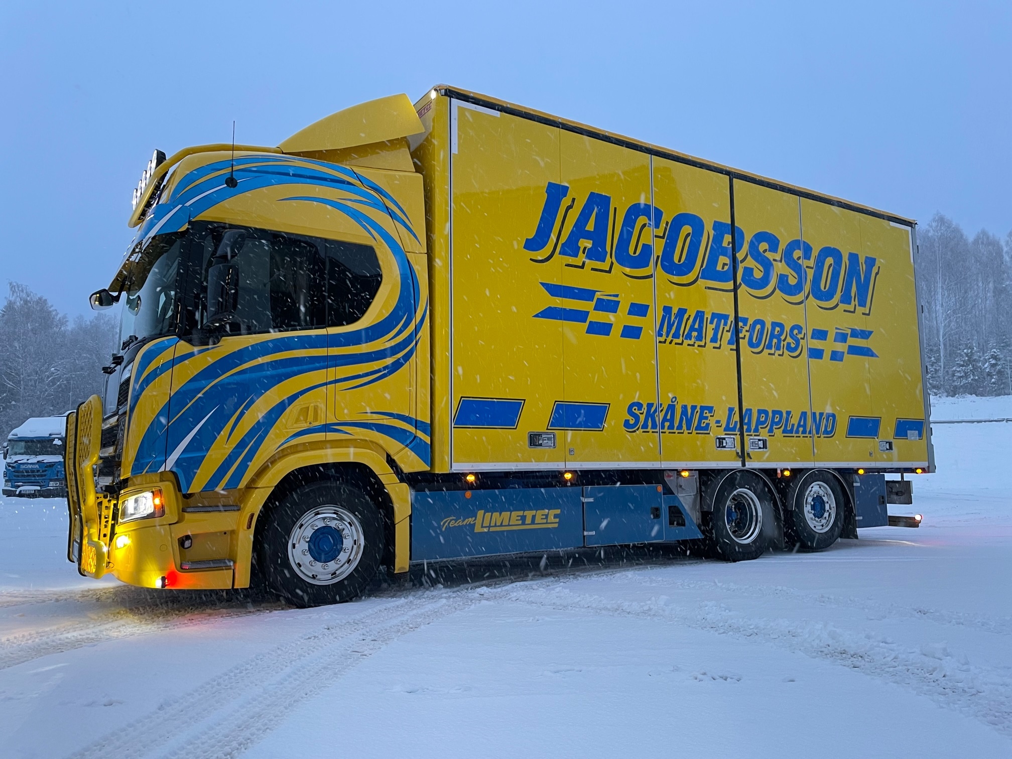 Ola & Björn har tagit ut en ny Scania Super R560 6x2*4 skåpbil med påbyggnation ifrån Limetec. Lackbolaget har lackerat hytten och verkstaden i Sundsvall har monterat extra utrustningen. Berners Tunga Fordon i Sundsvall tackar för förtroendet att få leverera den fina bilen.